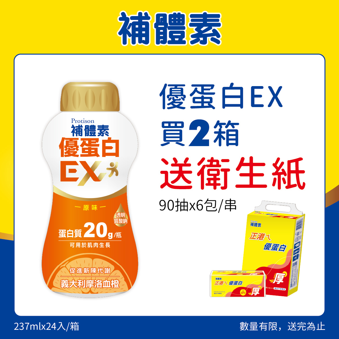 補體素優蛋白EX,買2箱送衛生紙1串,送完為止