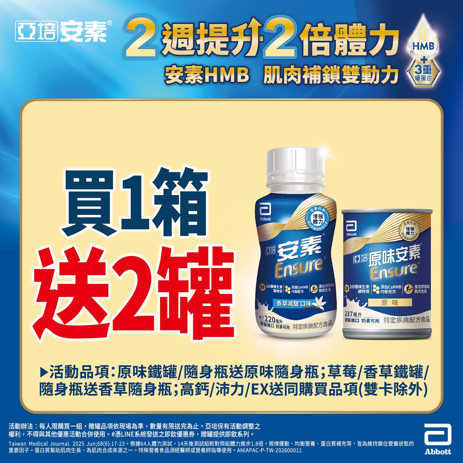亞培安素指定商品,買1箱送2罐(隨機口味),送完為止