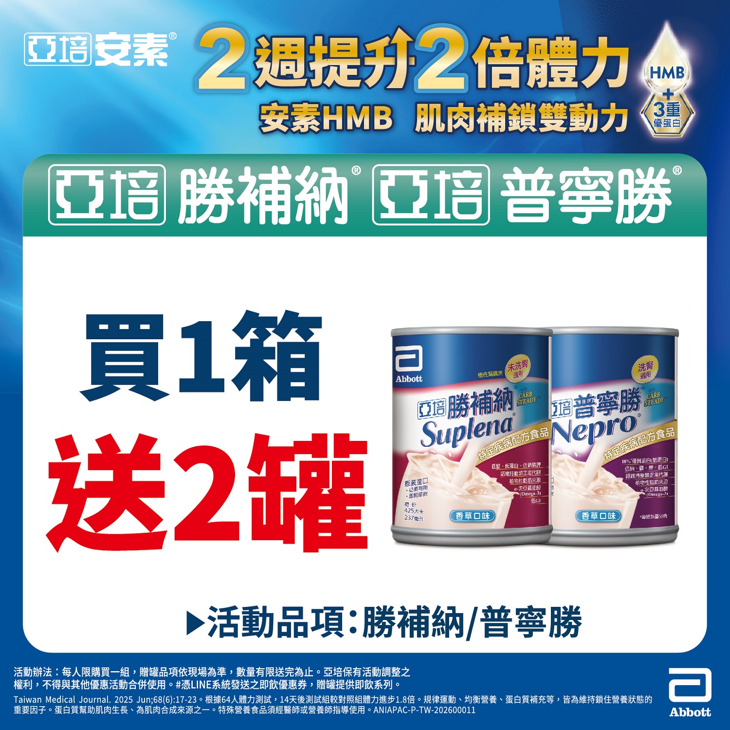 亞培普寧勝/勝補納,買1箱送2罐(同品項),送完為止