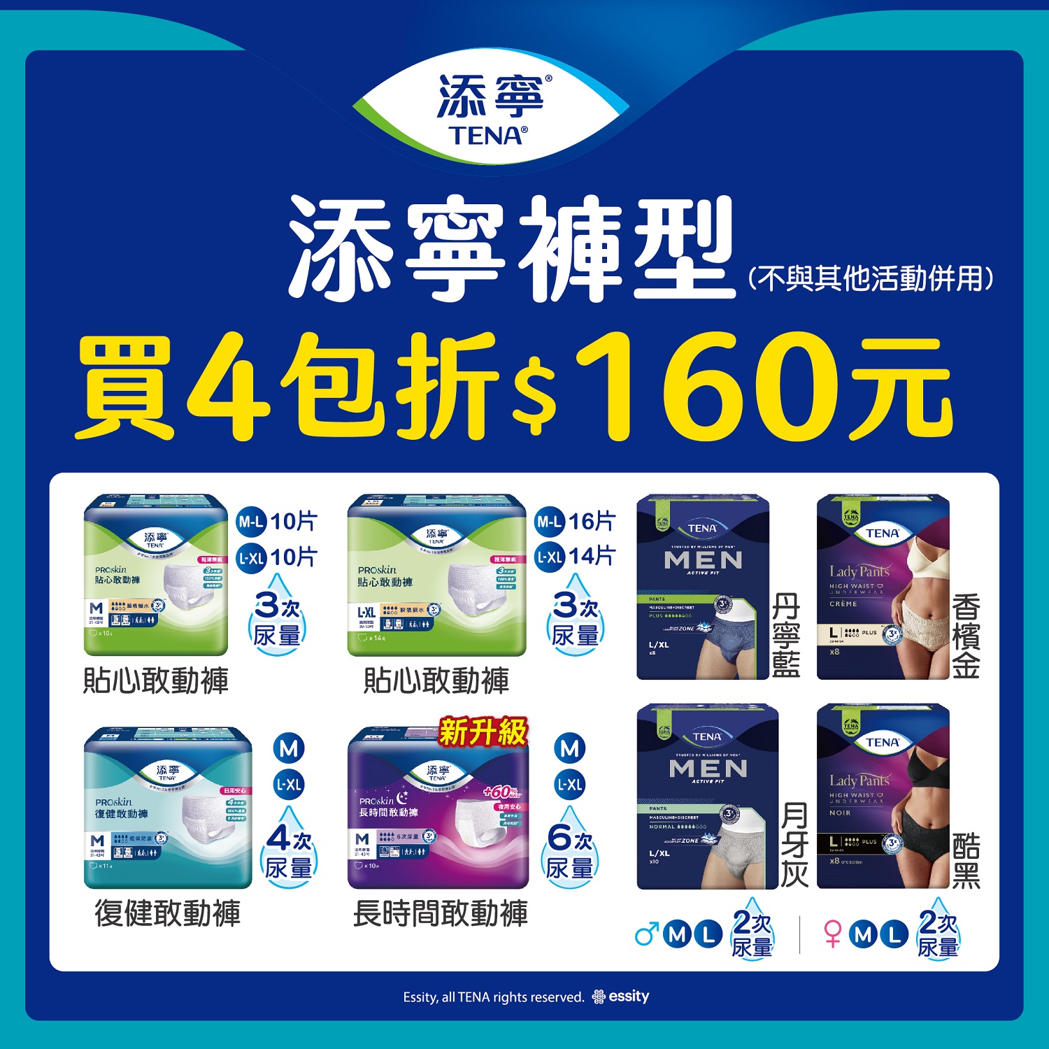 添寧指定褲型,買4包折160元(售完為止)