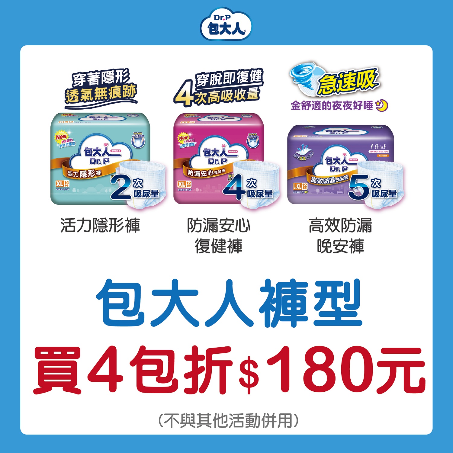 包大人指定褲型,買4包折180元(售完為止)
