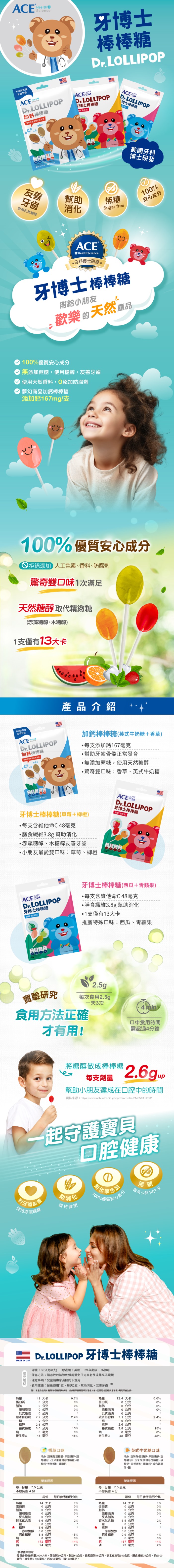 ACE SCIENCE牙博士加鈣棒棒糖(香草+英式牛奶糖)