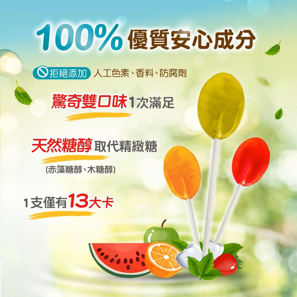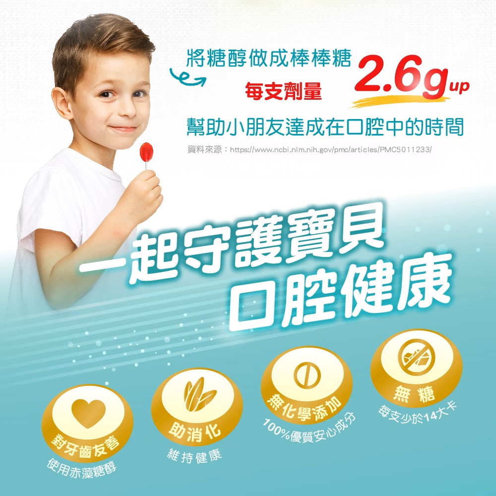 ✅每支含2.6g天然糖醇(赤藻糖醇、木糖醇),無糖,對牙齒友善。