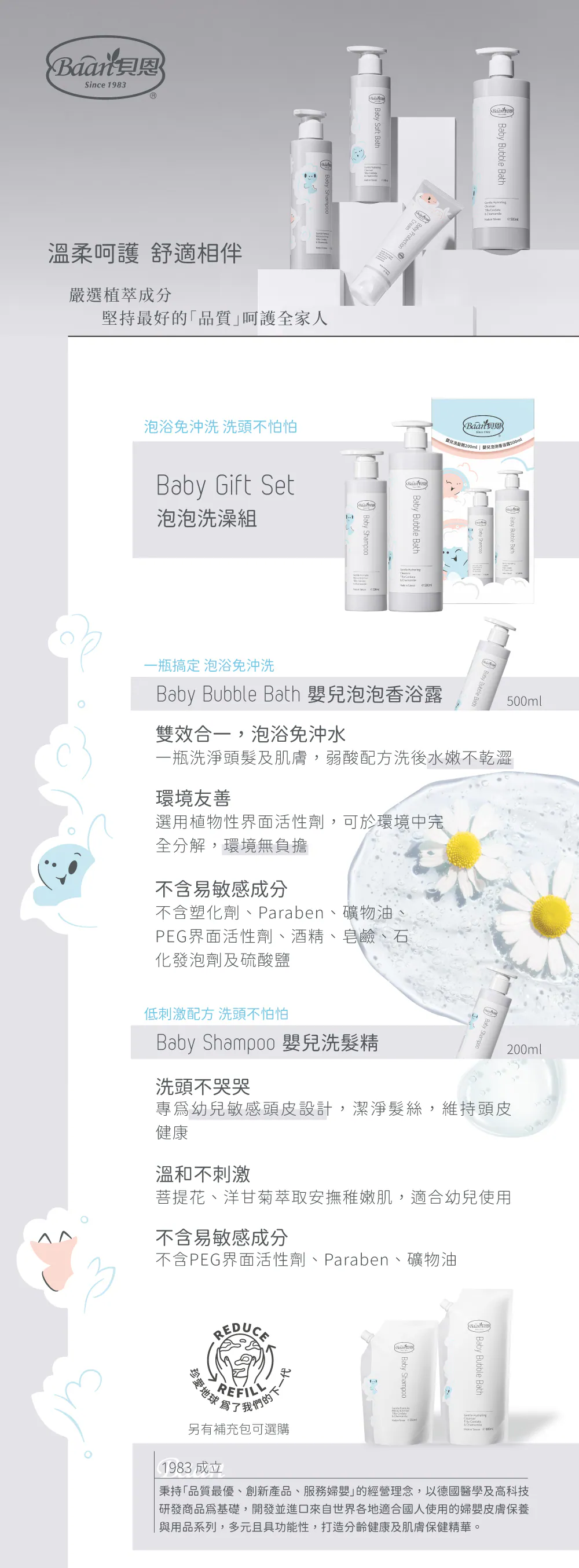 貝恩嬰兒泡泡洗澡組【任一禮盒買就送貝恩凡士林50g 送完為止】