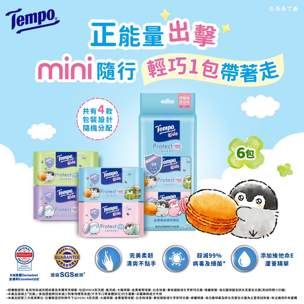 Tempo kids抗菌倍護濕巾迷你裝8抽*6包