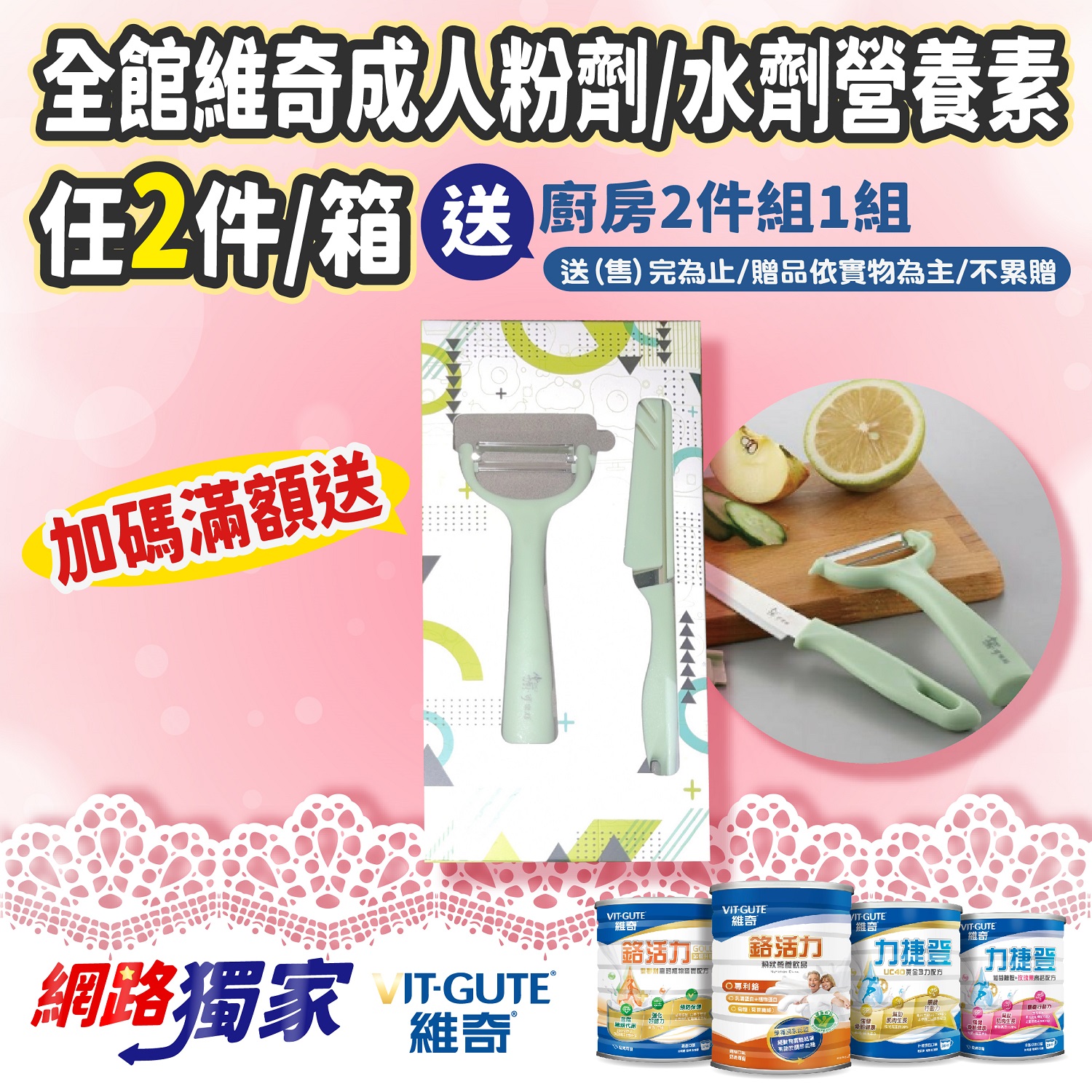 【網路獨家】全館維奇成人粉劑/水劑營養素,任2件或2箱送廚房二件組(送完為止)