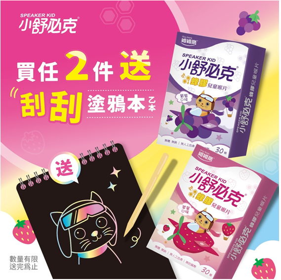 ★舒必克蜂膠兒童喉片,任2盒送刮刮塗鴉本(送完為止)