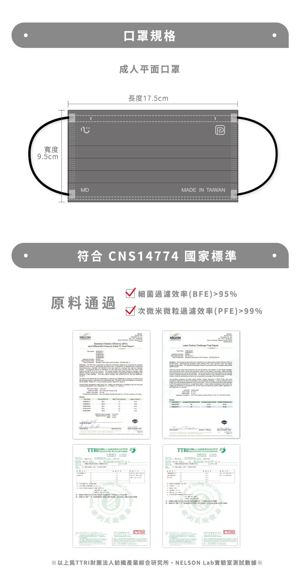 口罩尺寸:長17.5公分X9.5公分±0.5公分
