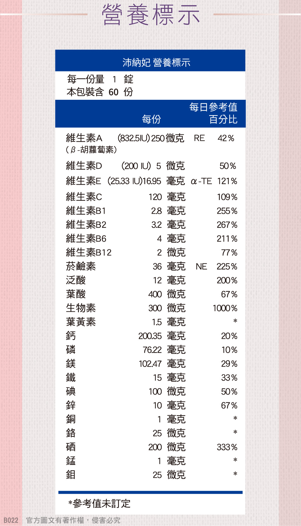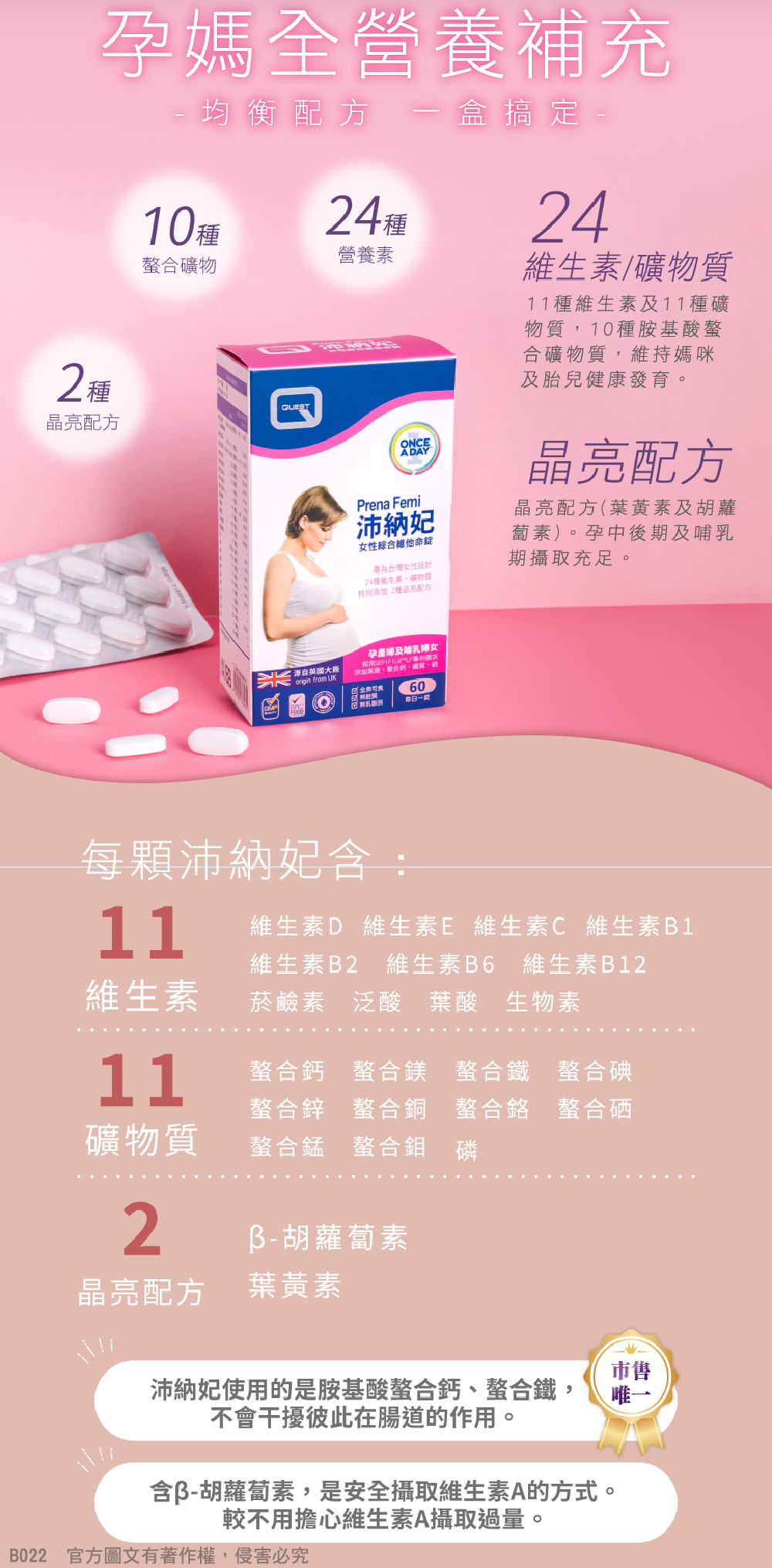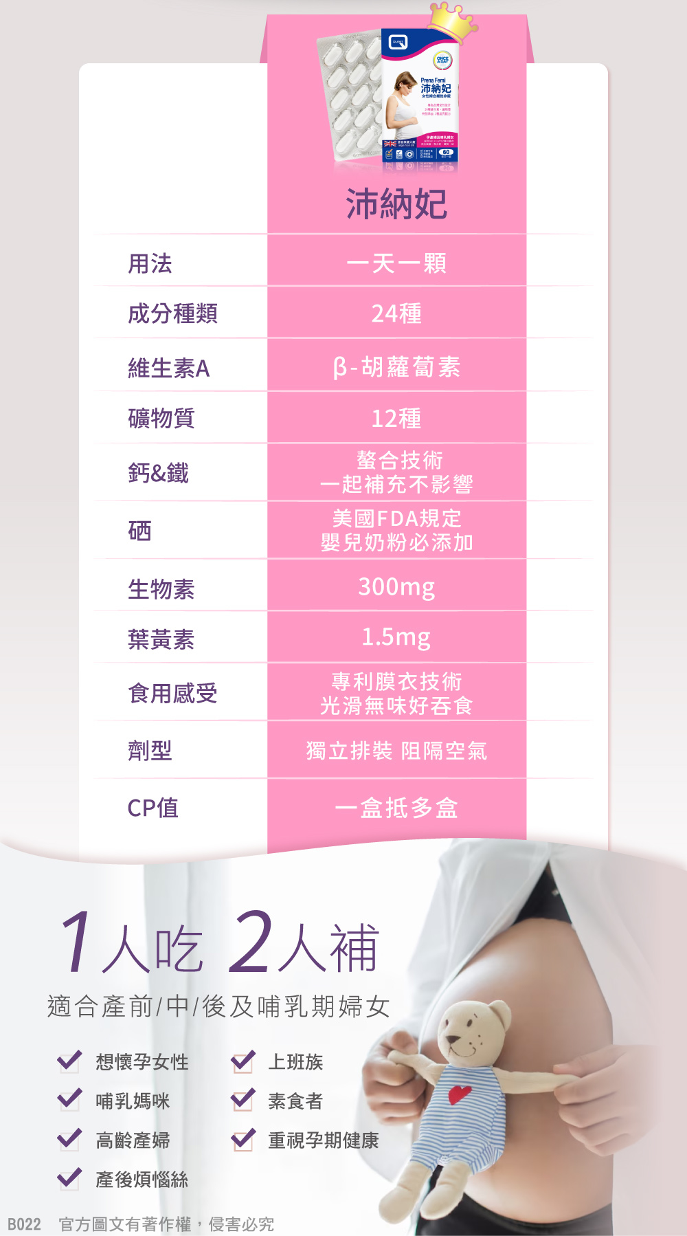 • 葉酸、B群、鈣、葉黃素等24種全方位營養素