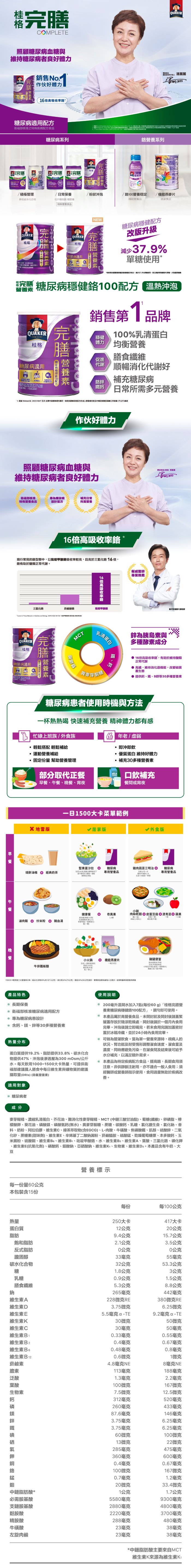 .適當醣類比例之配方,照顧糖尿病血糖與維持良好體力