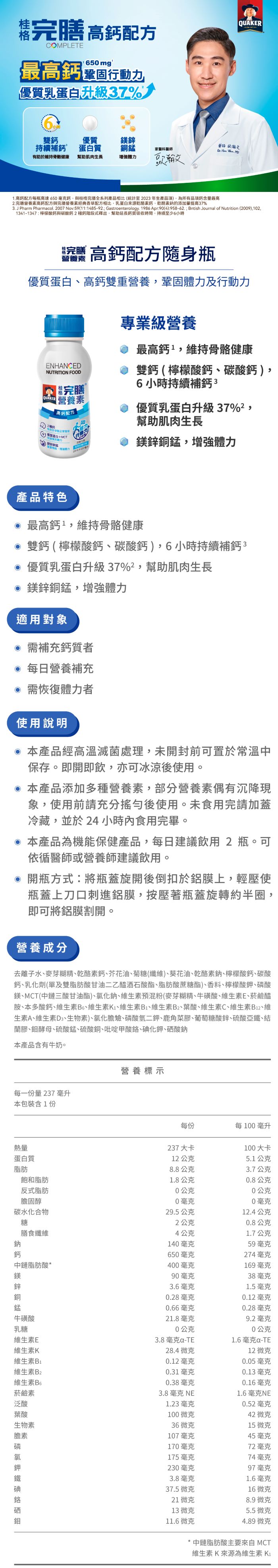 桂格完膳營養素高鈣配方隨身瓶,三重配方,讓你補體力跟肌力,也能同時補鈣