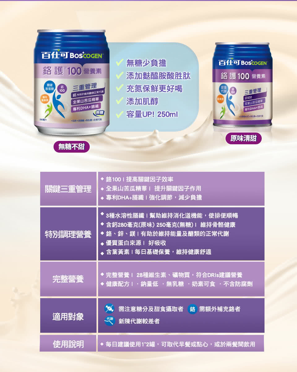 內容物名稱(成分):水、麥芽糊精、乾酪素鈣、紅花籽油、麥芽糖、芥花油、乾酪素鈉、綜合維生素礦物質(碳酸鈣、維生素C、氯化鈉、磷酸鉀、穩定劑(結蘭膠、鹿角菜膠)、重酒石酸膽鹼、肌醇、氯化鉀、氧化鎂、甘露醇、牛磺酸、維生素E、檸檬酸鉀、焦磷酸鐵、硫酸鋅、硒酸鈉、三氯化鉻、酵母鉬、菸鹼醯胺、碘化鉀、本多酸鈣、生物素、維生素A、維生素B12、葉酸、硫酸錳、維生素K1、維生素D3、維生素B6、維生素B1、硫酸銅、維生素B2)、果寡糖、難消化性麥芽糊精、香料、菊糖、脂肪酸甘油酯、脂肪酸蔗糖酯、苦瓜萃取物(苦瓜萃取物、γ-環狀糊精)、分離大豆蛋白、乳清蛋白、磷酸氫二鉀、乳酸硬脂酸鈉、微藻萃取物(含DHA)、金盞草萃取物(含葉黃素)、蔗糖素(甜味劑)、鹿角菜膠 ※本產品含有牛奶製品及小麥製品