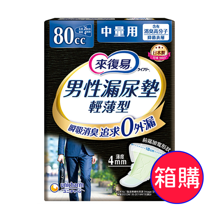 來復易男性漏尿棉墊18P-中量型80cc 【6包/箱】